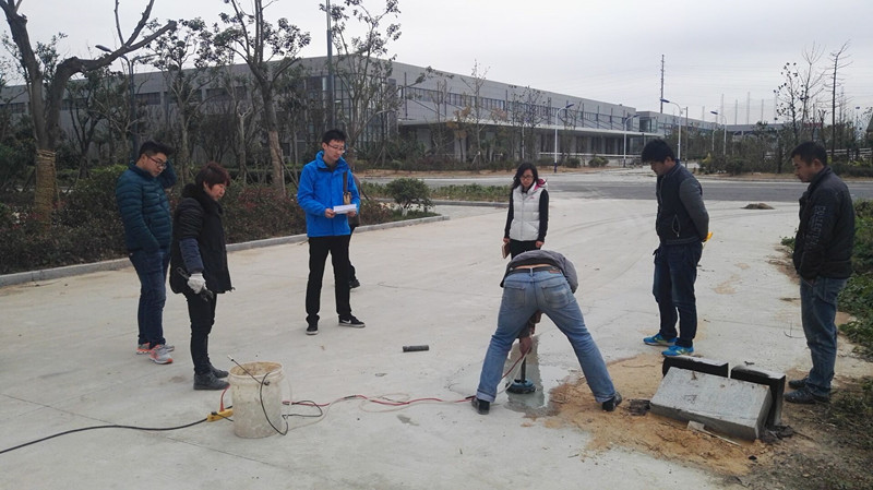 近日,盐城市政府公共工程审计中心审计人员组织开发区综合保税区保税物流工程项目相关业主、施工、监理等单位采用抽样审核、实地查看、测量和取芯检测等方法对道路附属质量进行重点检查,确保保税区财政资金高效使用。图为11月23日审计人员现场取芯,检测路面结构层厚度。(刘海霞 周荣)