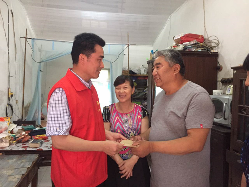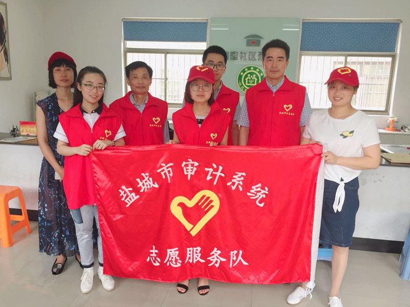 7月5日,由盐城市审计局机关党委、工会、团支部代表组成的志愿者服务队赴结对帮扶的幸福路社区,炎炎夏日里为6户帮扶家庭送上了亲切的慰问。图为志愿服务场景。(张荣胜 周生祥 周赟婕)