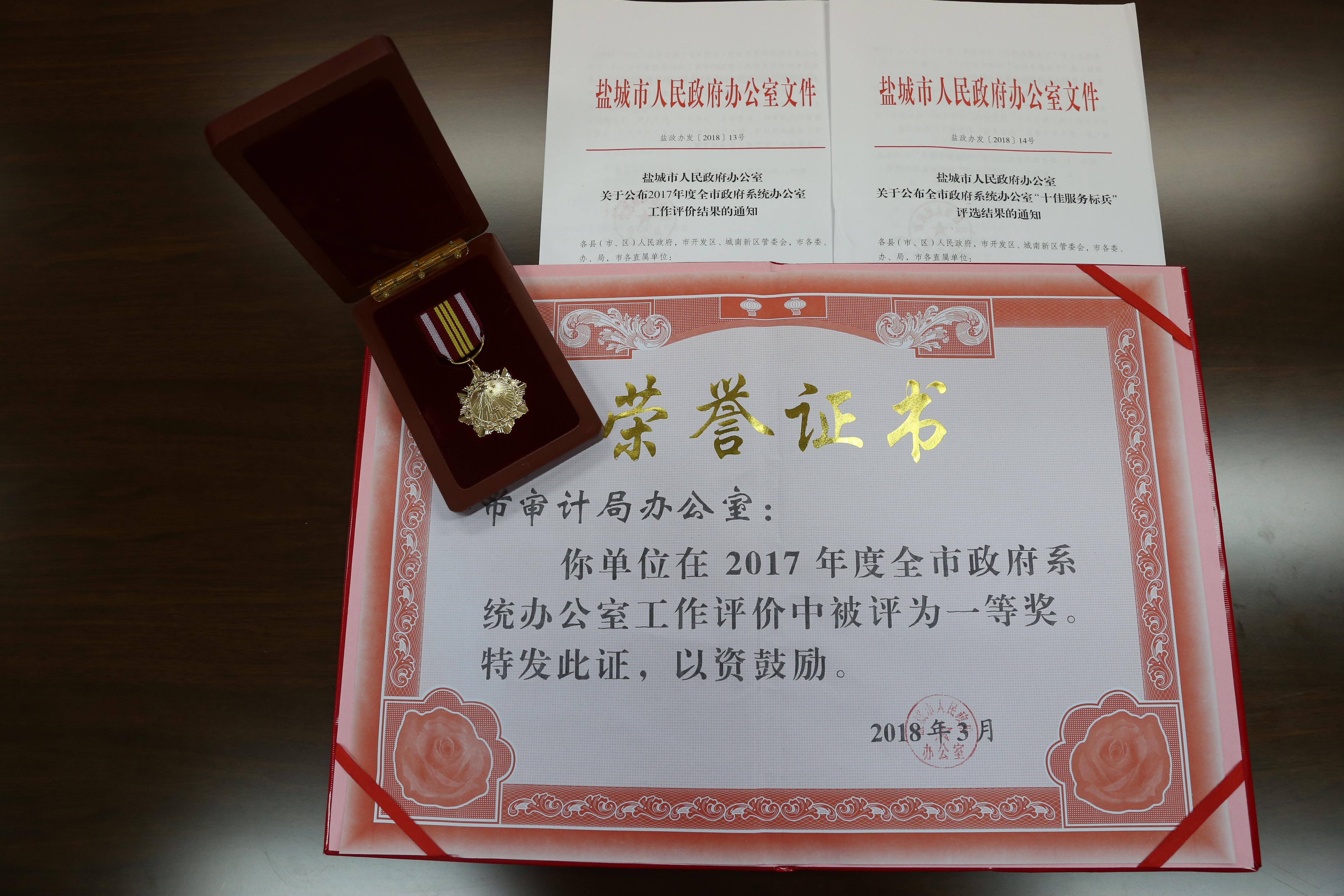 会议还表彰了2017年全市政府系统办公室工作先进集体。盐城市审计局办公室一班人凭借着追求极致的工匠精神,在调查研究、综合文稿、信息报送;重大活动、重点项目的衔接、协调;督查工作机制完善与重点任务落实等方面,均获得市政府办的高度评价,继上一年度在全市首次政府系统办公室考核第一名后,再次以高分力拔头筹,这是对市审计局办公室全体人员辛勤努力的最好肯定和鼓励。(王欣)
