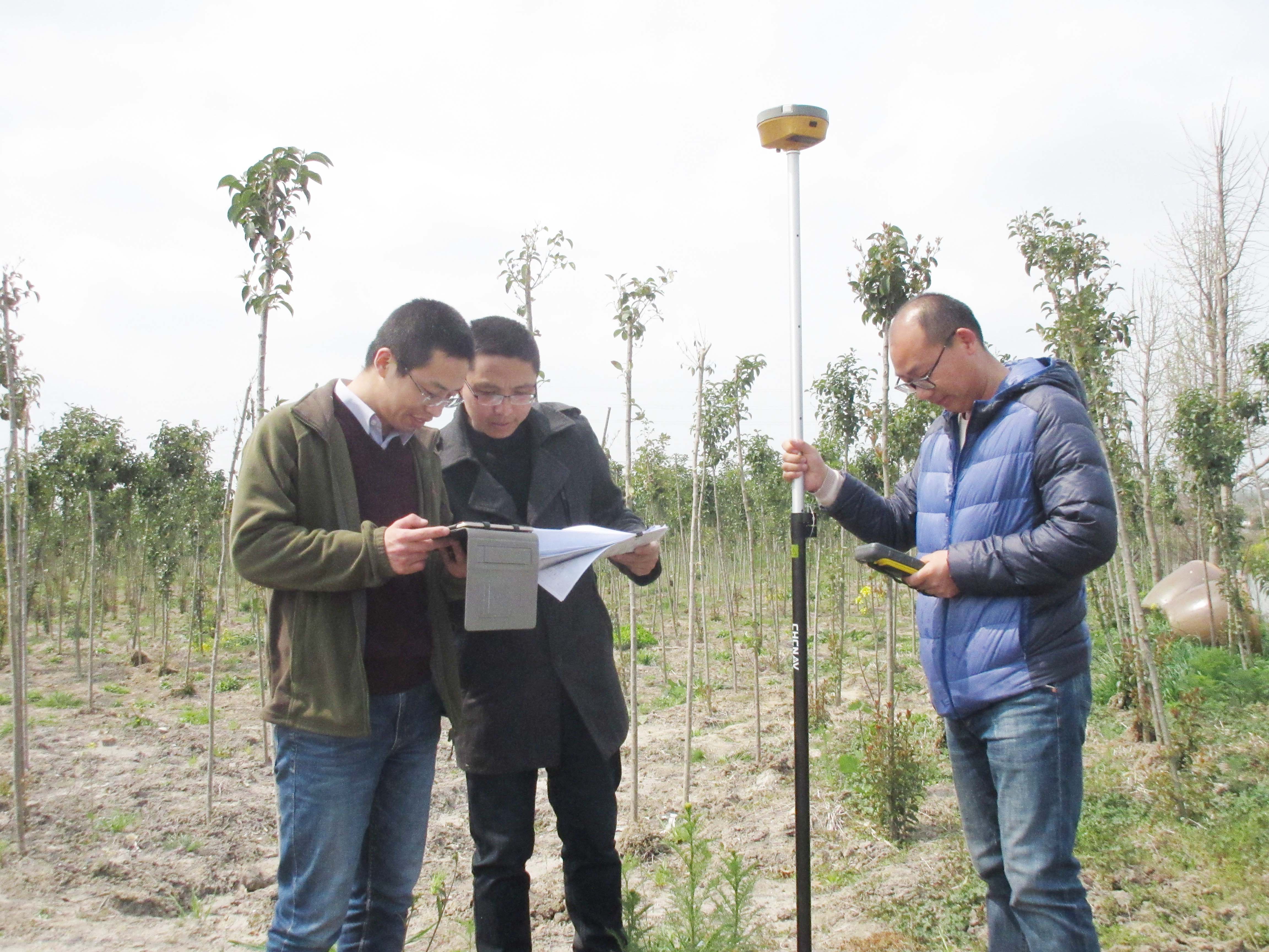 近日,大丰区审计局在沿海百万亩生态防护林工程建设资金管理调查中,积极探索运用地理信息系统技术开展造林面积核查。图为审计人员使用“林调通”和GPS在造林现场采集数据。(杜国美 王小月)