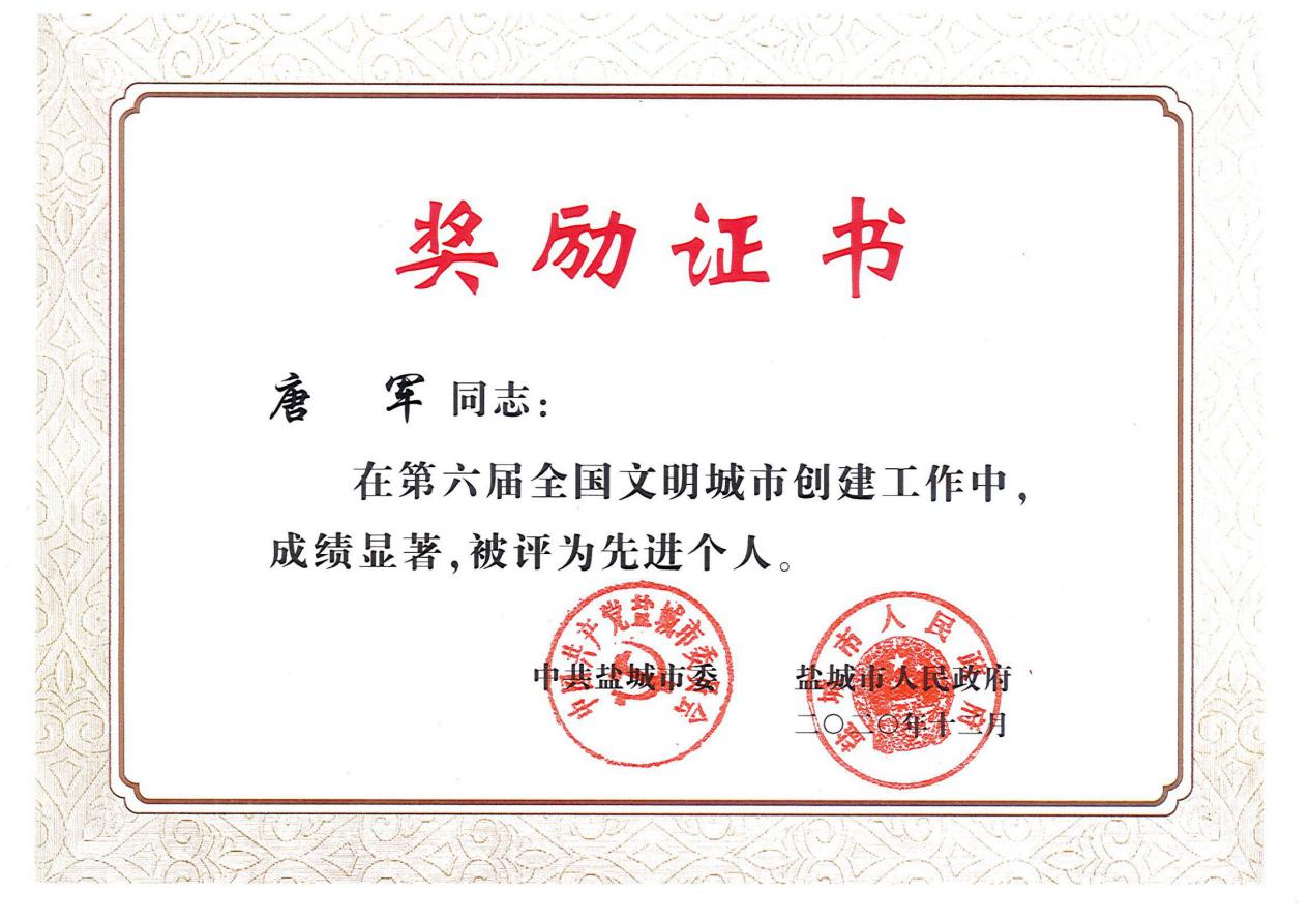 从盐城创建全国文明城市工作总结表彰大会传来喜讯,盐城市审计局被市委、市政府表彰为创文先进单位,唐军同志被表彰为创文先进个人。