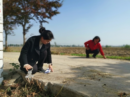 近日,阜宁县审计局在某镇领导干部经济责任审计中,重点关注农村公路建设情况。审计人员通过查阅项目中标文件、竣工资料等相关台账,结合实地走访,核查农村公路建设管护情况,进一步规范农村公路建设管理,为乡村振兴贡献审计力量。图为审计人员实地核查农村公路宽度。(须怡红 王晓)