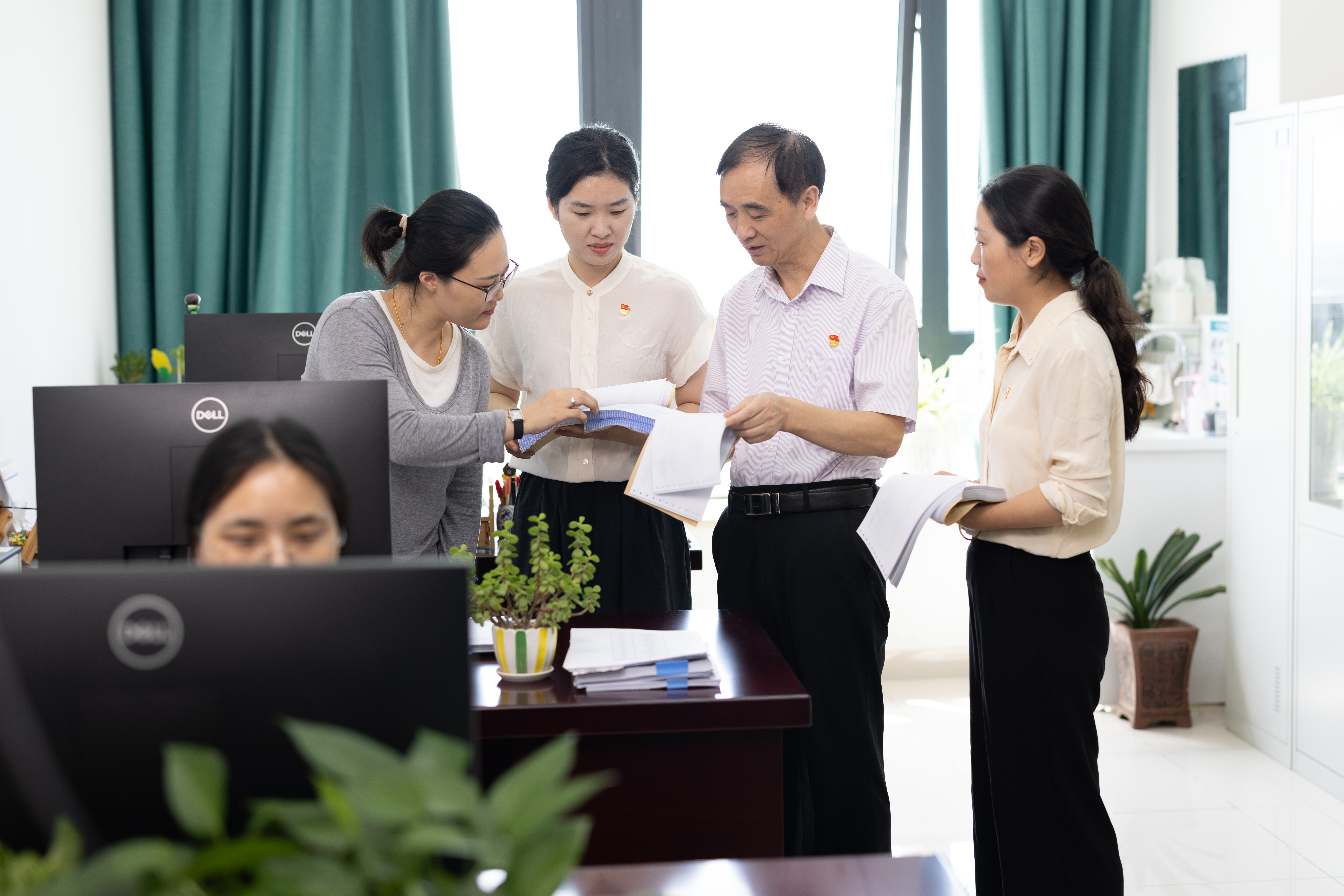 近日,射阳县审计局在全县医药体制改革相关政策落实和资金管理审计中,围绕推进医药服务供给侧改革政策落实,重点审查药品和医用耗材采购监管和医药服务价格改革情况,推动破解“看病难”“看病贵”难题。图为审计人员比对医院药品、耗材采购数据与阳光平台采购数据。(王志之、薛国春)