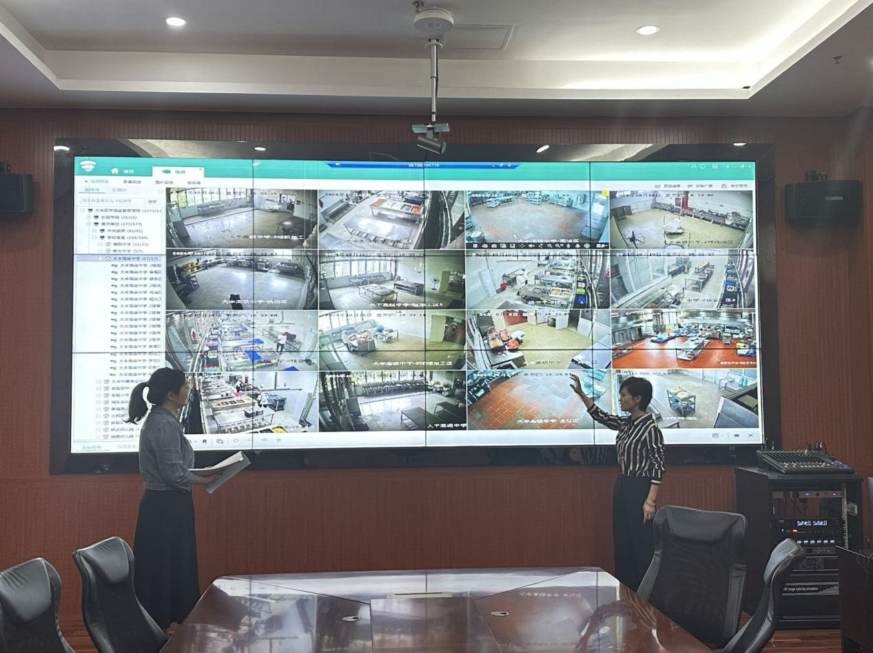 近日,大丰区审计局在区市场监管局领导干部经济责任审计中,重点关注“明厨亮灶”智慧监管平台的建设、运行和管理等情况。审计人员现场查看已建立的智慧监管平台,了解平台中各功能模块的运行情况,并随机抽查农贸市场、学校食堂、餐饮企业等单位的视频监控,督促区市场监管局加强餐饮服务食品安全监管。图为审计人员查看监管平台现场。(王小月、陈玉婷 )