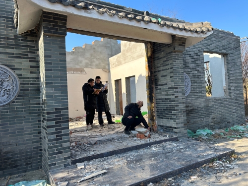 近日,亭湖区审计局聚焦清障补偿审计工作,组织审计人员深入新场田园综合体项目一线,对照项目现状图、评估报告等资料开展实地勘查,精准核验建筑面积、结构类型等关键数据,重点比对实际工程量与补偿申报数据的一致性,切实保障项目补偿工作公平公正、合规有序。图为审计人员复核房屋建筑物工程量现场。(蔡静静邵小荔)