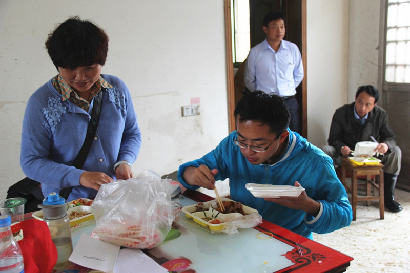 7月1日是中国共产党的生日。阜宁县审计局的全体党员坚守在抗灾救灾的一线,顶着暴雨,一户一户清理受灾群众,防止出现灾后次生事故,中午在房顶漏雨、地面积水的屋中吃了简单的盒饭。图为党员同志吃盒饭。(阜宁县审计局)