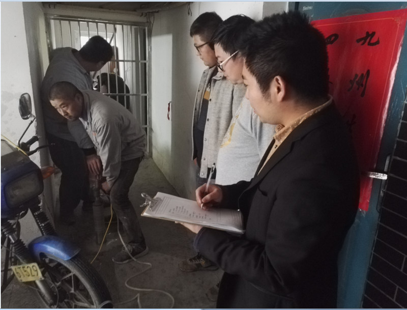近日,盐城市审计局在城南新区某房建工程审计过程中,深入工程现场,加强隐蔽工程核查,防止由于施工过程中偷工减料、以次充好造成国有资产流失。图为11月10日审计人员现场取芯测量。(孙爱国 朱俊昊)