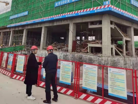 近日,盐城市审计局持续跟踪公共卫生临床中心项目建设进度。审计人员深入施工现场,对照施工要求检查钢筋绑扎方式、间距及钢筋型号等,促进项目建设提质增效,确保工程质量达标。图为审计人员在项目现场进行勘查。(项娟、朱俊昊)