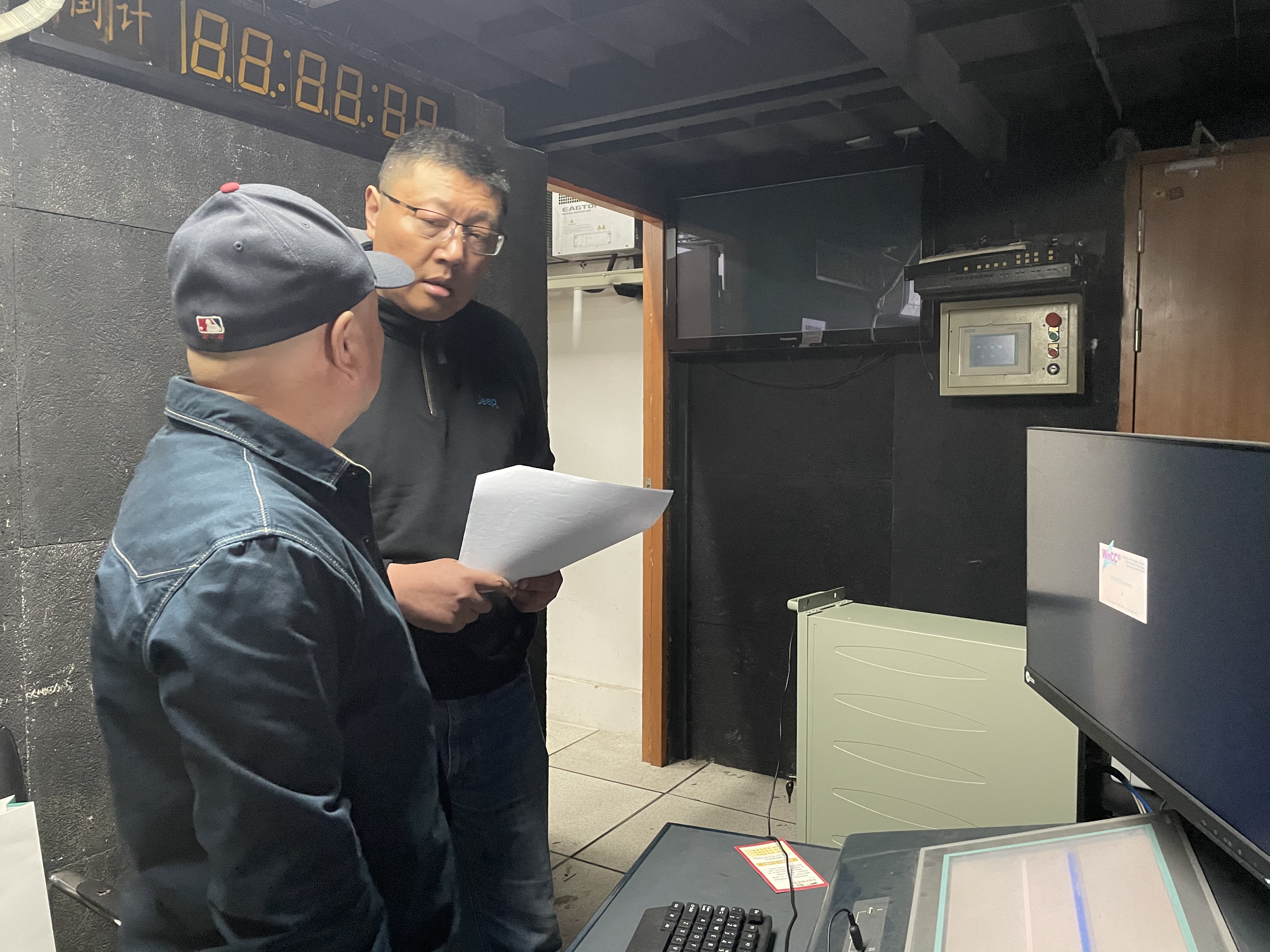 为丰富百姓文化生活,提高百姓生活质量,亭湖区审计局在文化设施建设项目审计中,重点关注设备安装、品牌型号及其使用效果,切实提高财政资金的使用效益,助力文化惠民工程建设。图为审计人员在文化艺术中心项目现场核查舞台机械设备品牌型号。(李晶晶)