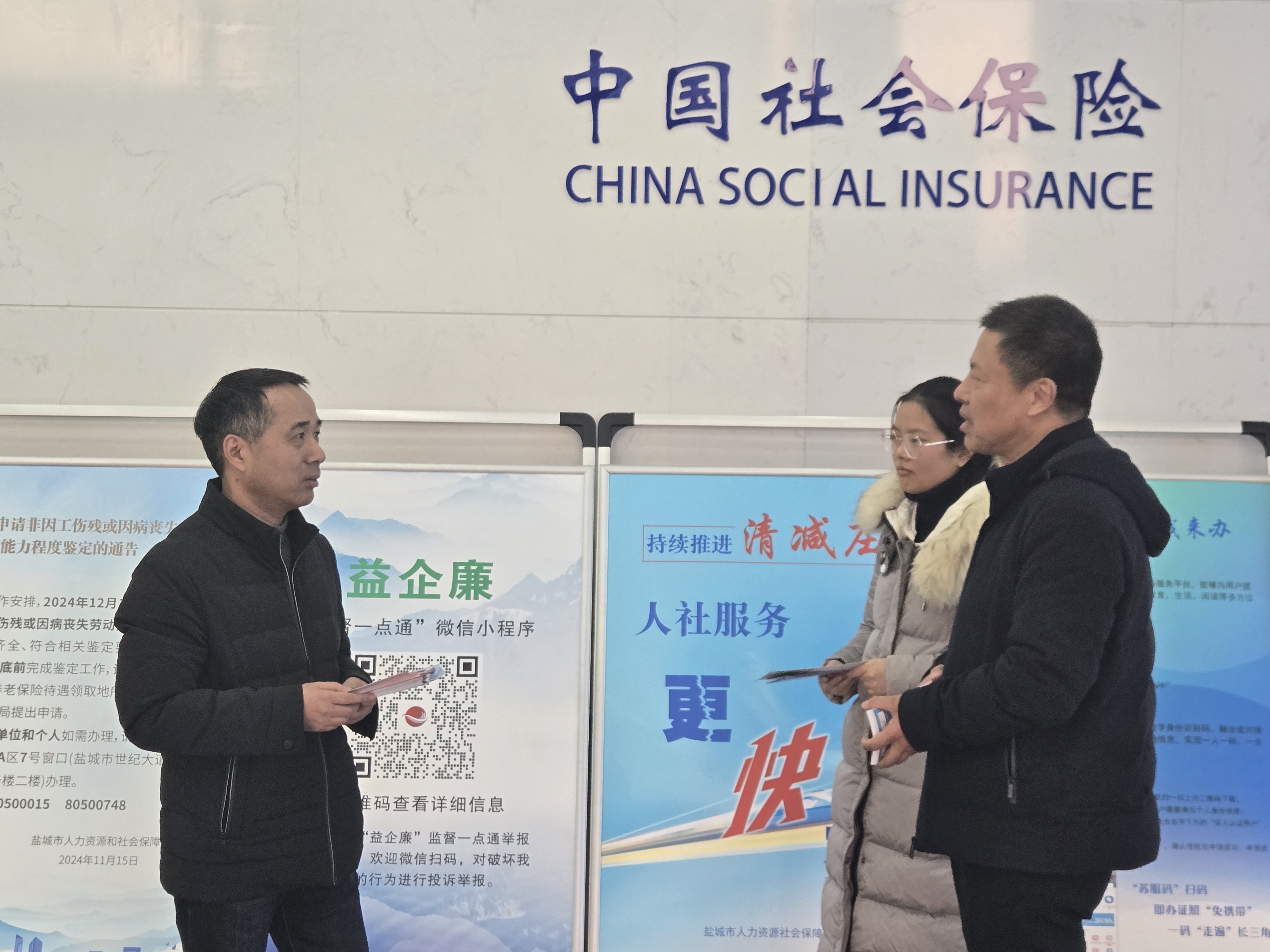 近日,盐城市审计局在养老保险基金专项审计调查中,重点关注退役军人养老保险基金转移接续及个人账户利息有无中断情况。审计人员通过实地查看业务窗口办理退役军人转移接续流程,抽查部分转移接续档案,促进充分保障退役军人养老权益。图为审计人员现场了解退役军人转移接续情况。(薛梅、夏雪莉)