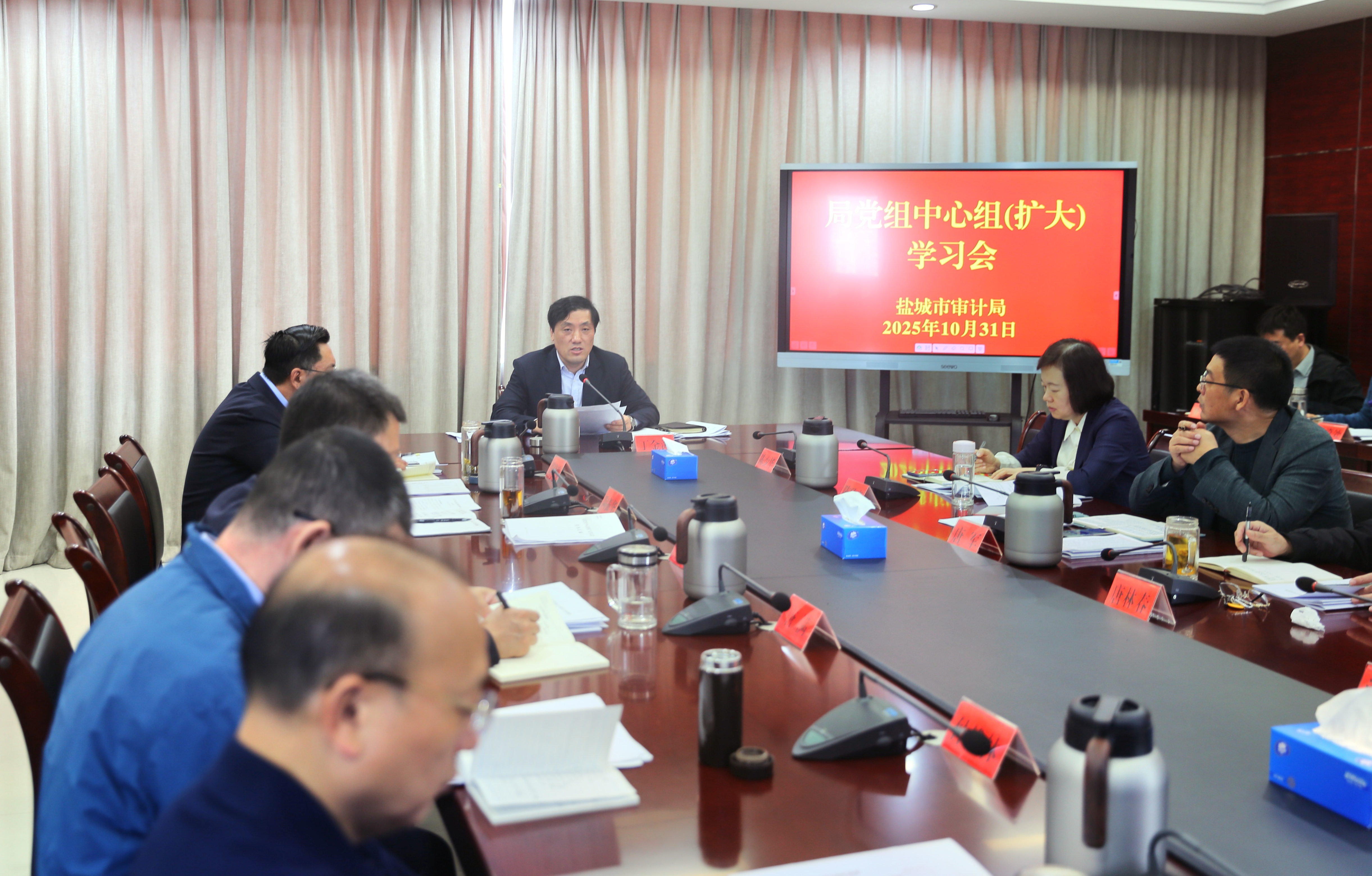 10月31日上午,盐城市审计局召开党组中心组(扩大)学习会,专题传达学习党的二十届四中全会精神,并结合审计工作实际,研究部署贯彻落实意见。局党组书记、局长丁金海主持会议并讲话,局领导班子成员、四级高级主管(四级调研员)以及各处室(中心)负责人参加会议。