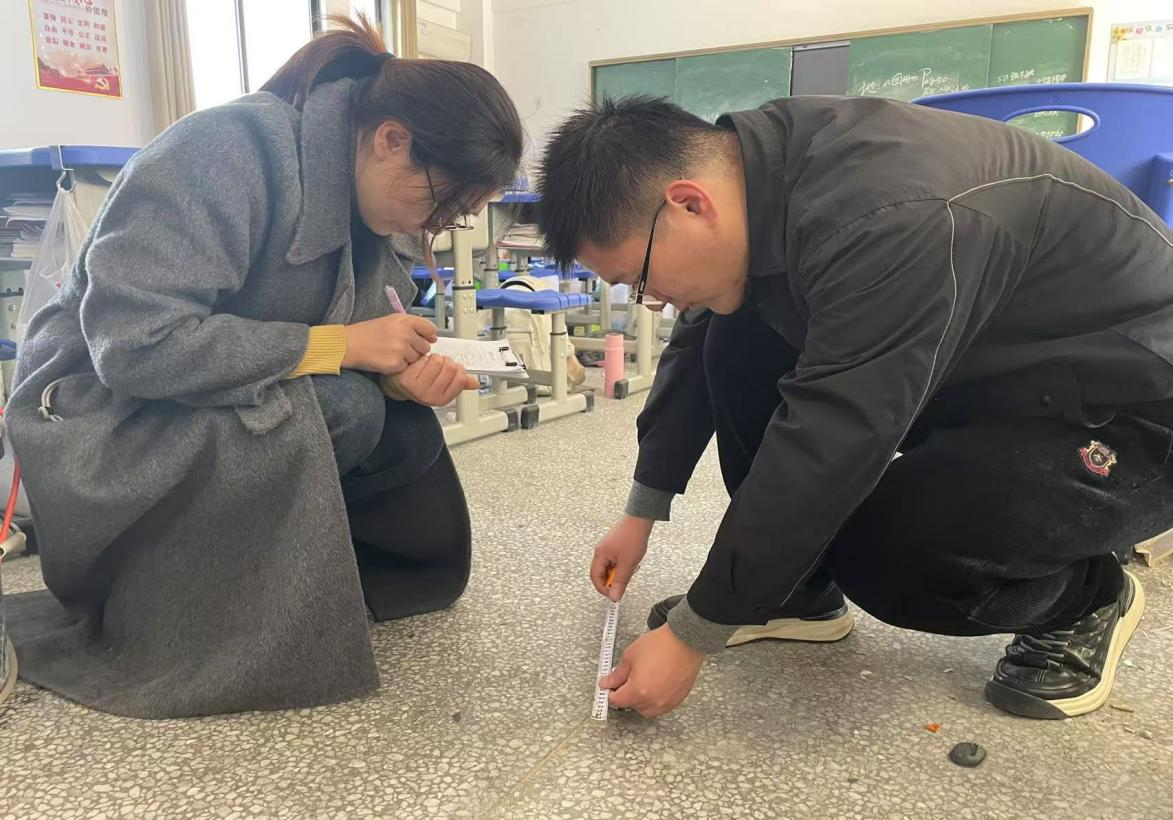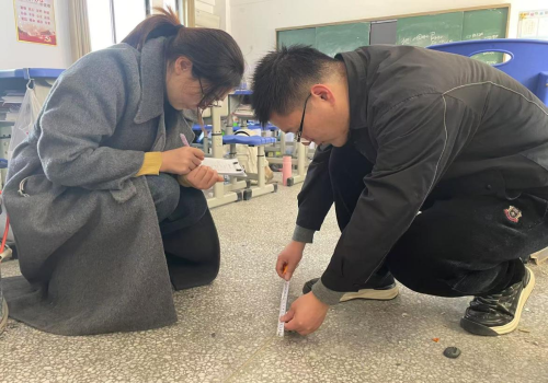 近日,建湖县审计局组织对某初级中学教学楼工程进行审计,审计人员通过查看现场和审阅立项、招投标、合同、签证等台账资料,对教学楼项目的建设程序执行、合同履行、建设管理等方面进行审计监督,促进规范工程项目管理,营造良好的教育环境。图为审计人员在测量教学楼地面厚度。(韩蓉蓉、曾煜)