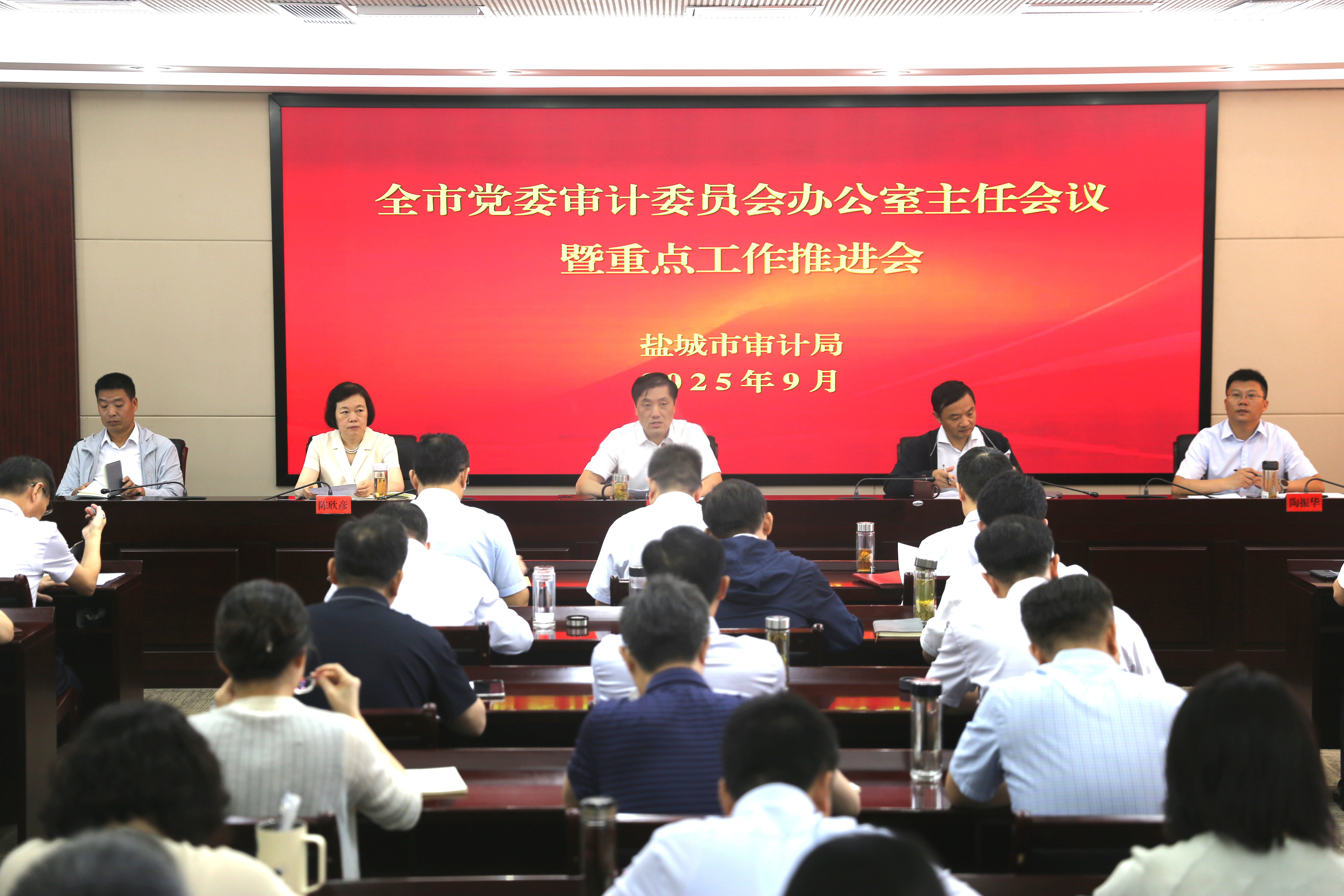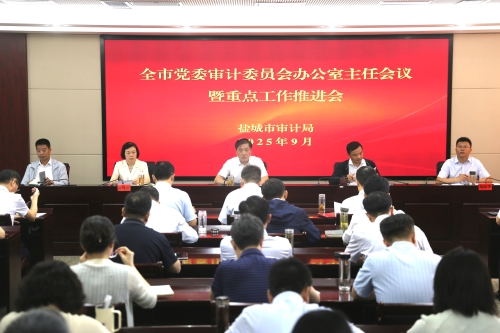9月11日,中共盐城市委审计委员会办公室、市审计局召开全市党委审计委员会办公室主任会议暨重点工作推进会,传达学习习近平总书记对审计工作作出的重要指示精神,落实“科学规范提升年”和“强研究、提质效”提升年部署要求,围绕“一聚焦、三聚力”工作安排,总结今年以来全市审计工作成效,分析当前形势与不足,研究部署下一阶段重点任务。市委审计办主任、市审计局党组书记、局长丁金海作总结讲话。